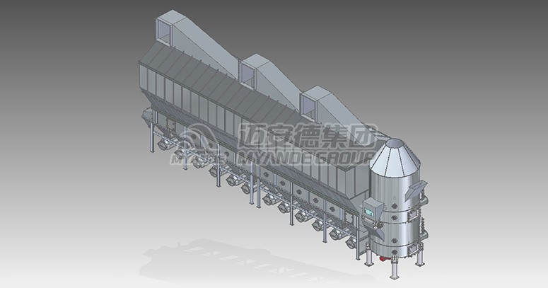 邁安德多級流化塔包含預干燥塔和臥式流化床兩部分,根據產量和物料的不同,預干燥塔直徑與臥式流化床加熱面積均不一樣。