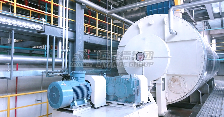 邁安德低溫脫溶機是一種大型連續低溫脫溶裝置,由低溫脫溶機A筒和B筒組成,輔以溶劑蒸汽過熱器、溶劑蒸汽循環風機、旋轉喂料器等裝置組套為成套設備,實現食用低溫脫溶大豆(或花生等)胚片的工業制取。