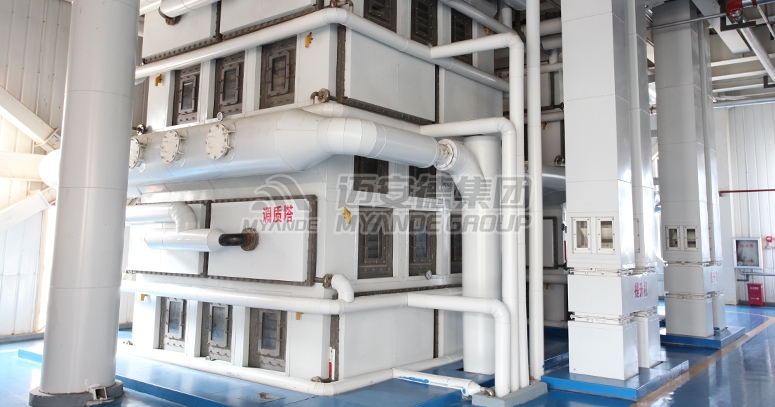 邁安德調質塔用于油脂生產中向大豆、菜籽或其它可自由流動的油料提供蒸汽、間接加熱進行水分、溫度的調節。層數根據不同油料或產量可靈活配備。