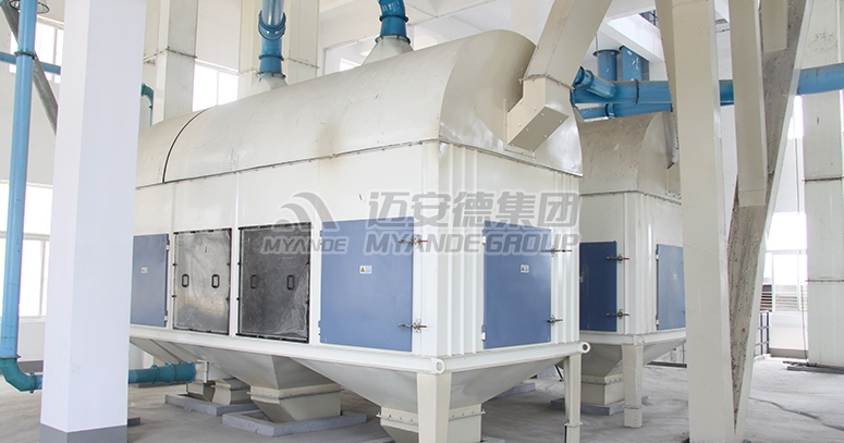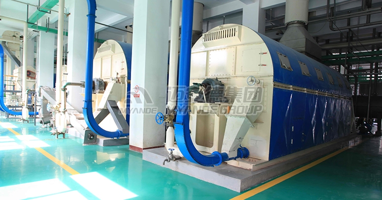原料清理目的是除去玉米中的鐵、砂、石、莖等非原料物質(zhì),保證設備正常運行,提高淀粉質(zhì)量。玉米原料經(jīng)斗式提升機輸送依次進入清理篩、磁選器等設備進行篩選、去石等凈化工序,凈化玉米計量后進入跳汰機進行濕法去石。